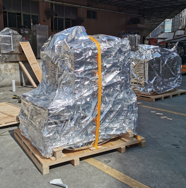 真空木箱包裝之所以能達到真空狀態(tài),主要取決于木箱內(nèi)部采用的一種包裝材料,目前真空木箱包裝的內(nèi)部采用的是鋁膜材料,除了防氧氣透過性及收縮性良好的聚偏二氯化乙烯(PVDC)外,還有聚酯、聚酰胺;或者尼龍、聚酯薄膜和聚乙烯多層等材料。其中聚偏二氯化乙烯的防止氧氣和水蒸氣的透過性為各種膜料之冠,然而最大的缺點是不能耐熱封。聚酯具有很強的張力強度、軟性;尼龍的防止氧氣透過率尚好,耐熱、耐寒性亦佳,機械性也很強,但水蒸氣透過率大,且價格昂貴,所以多以多層復合的形式作為木箱真空包裝的材料。